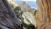 Després del darrer ràpel hem seguit baixant una mica, ara ja caminant, seguint la riba esquerra del torrent fins que hem trobat un caminet transversal. Aviat hem comprovat que aquest era el camí que esperàvem trobar perquè estava senyalitzat amb marques de pintura vermella.